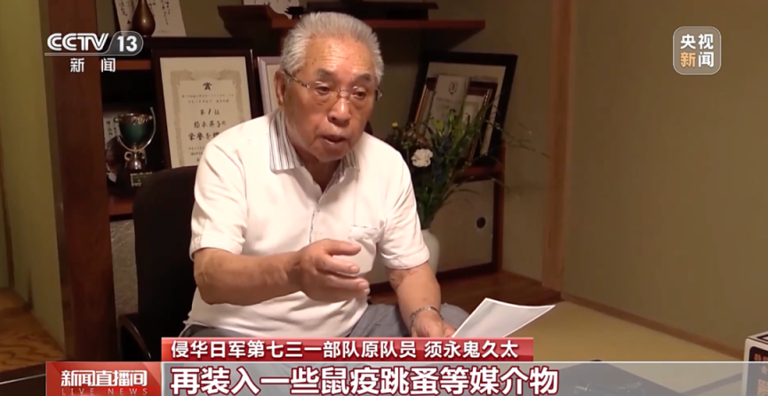 1943年4月,须永鬼久太被招募到侵华日军第七三一部队少年班,他曾参与制作陶瓷细菌炸弹。“陶瓷细菌炸弹有一米八或者两米高,里面装有鼠疫跳蚤等媒介物。如果是铁制炸弹,炸碎时产生的热量就会把跳蚤烧死,陶制的炸弹就不会有这样的问题。”